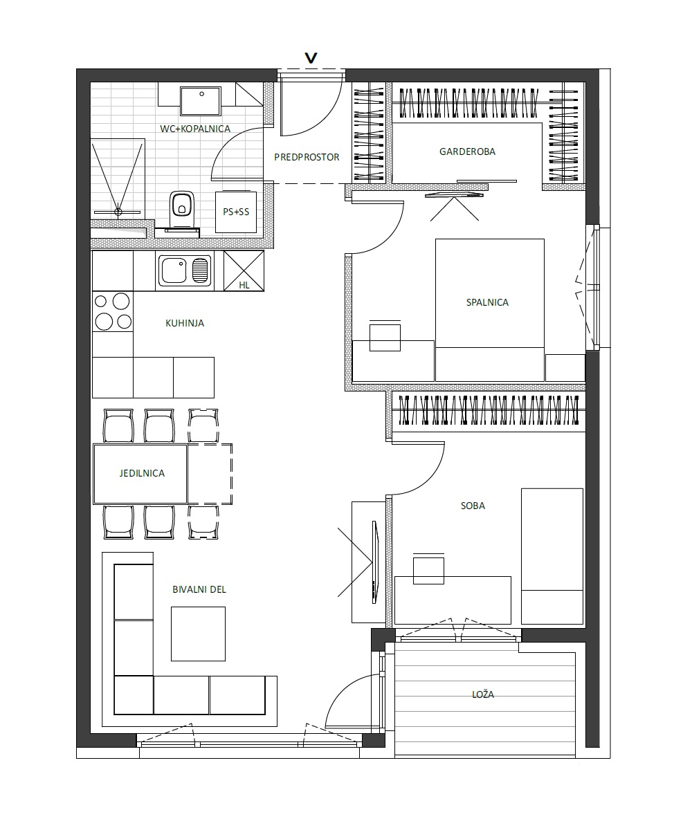 Kuhinja+jedilnica+bivalni del 30,47 m2