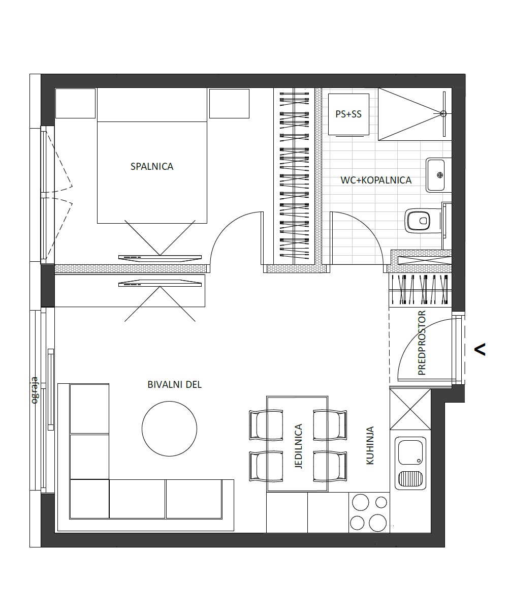 Kuhinja+jedilnica+bivalni del 19,82 m2