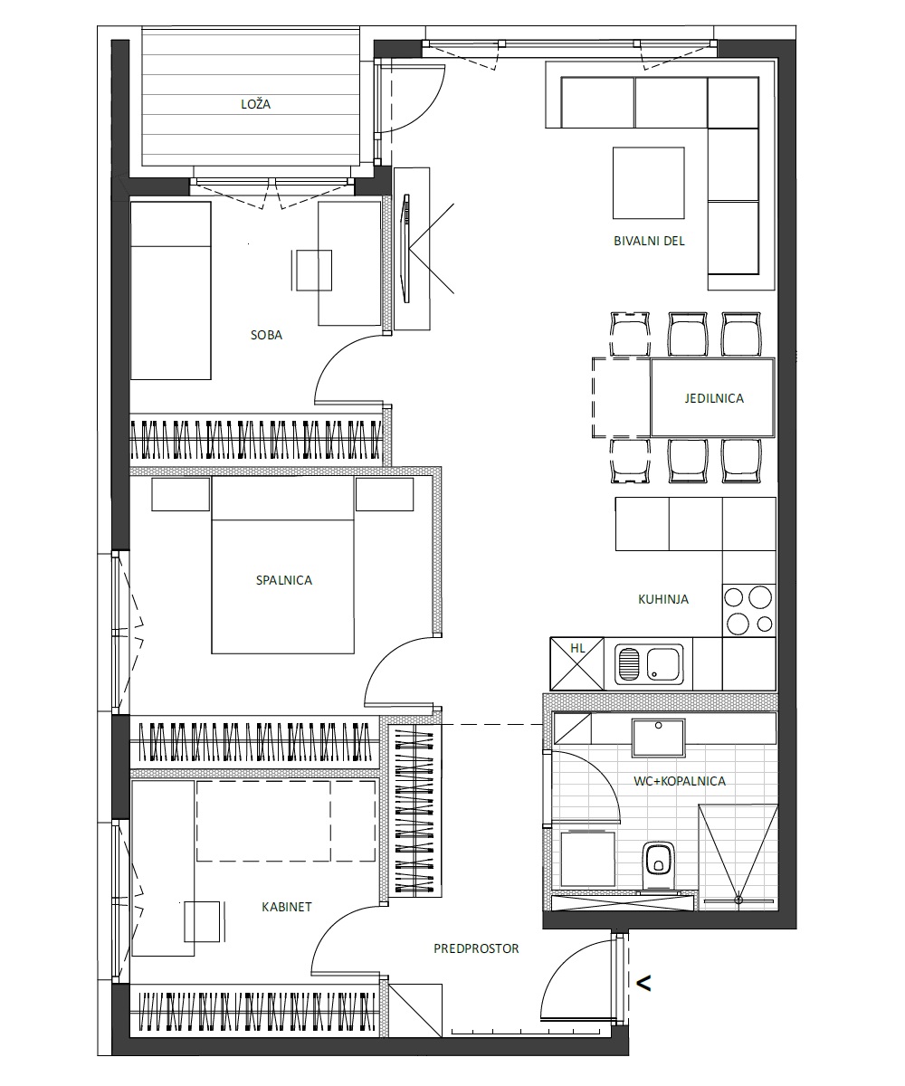 Kuhinja+jedilnica+bivalni del 30,06 m2