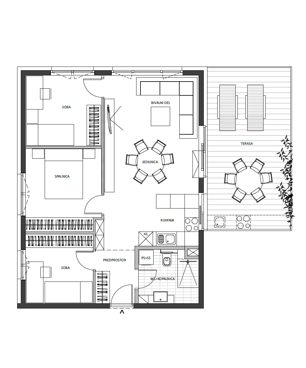 Kuhinja+jedilnica+bivalni del 29,40 m2