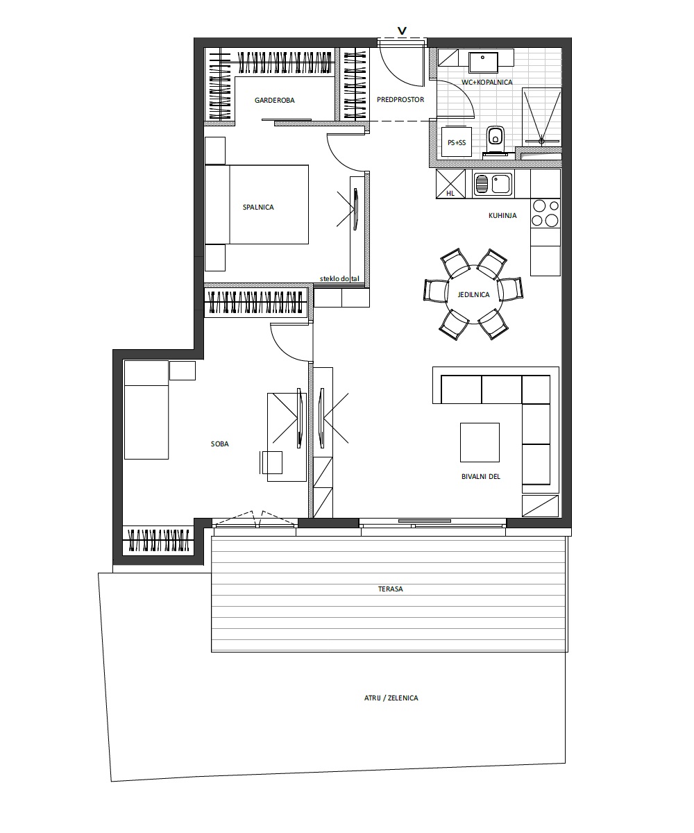 Kuhinja+jedilnica+bivalni del 34,59 m2